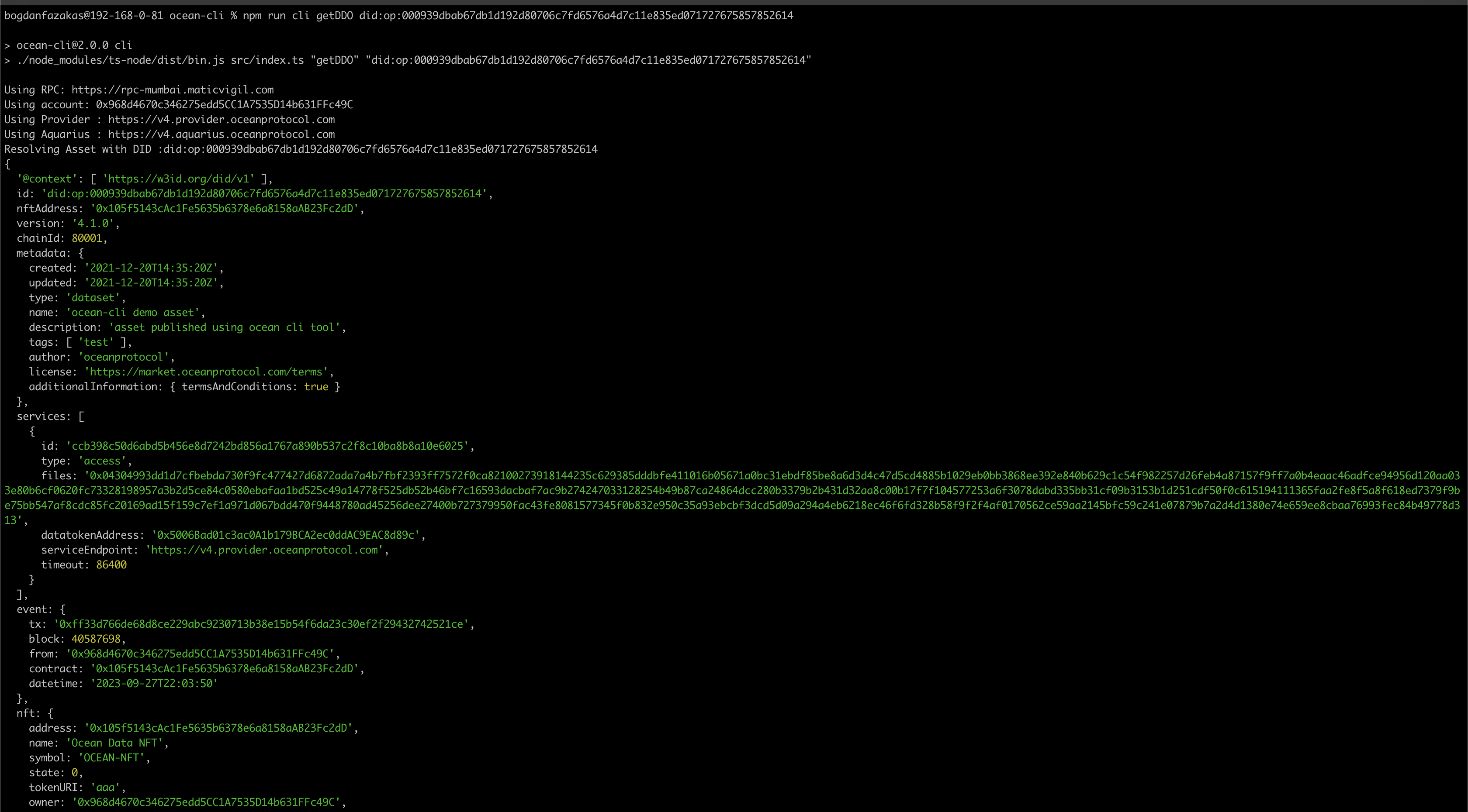 npm run cli getDDO 'assetDID'